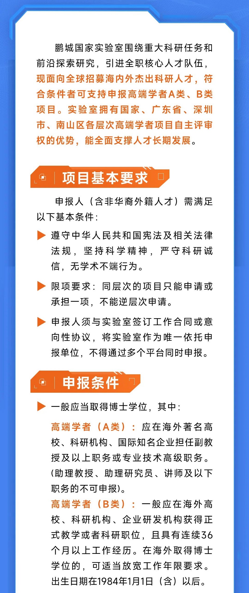 鹏城实验室诚邀海外英才申报2024年高端学者项目